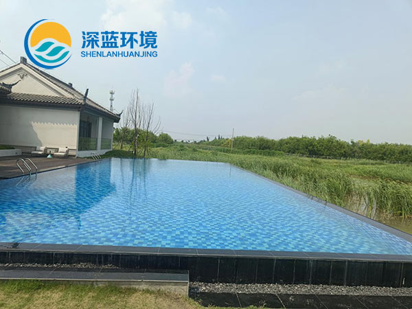 德州乐陵影视城无边际泳池注水调试、完美运行