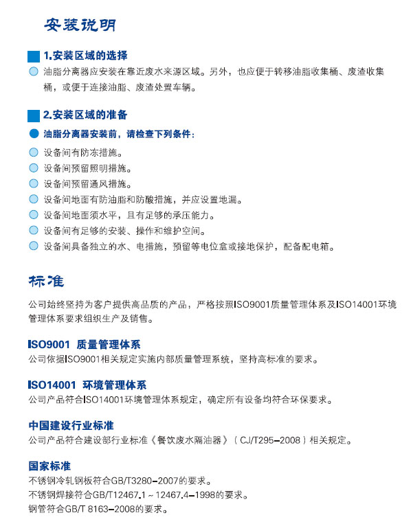 本产品主要适用于商业广场、酒店、餐厅、食堂、住宅厨房等场所的餐饮含油废水处理事同时也 适用于机场、食品加工厂、屠宰场等。